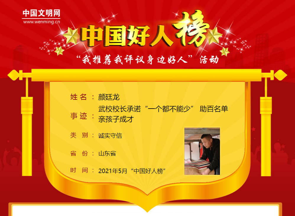 武校校长颜廷龙荣登诚实守信榜