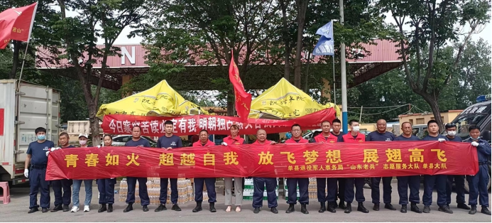 单县退役军人事务局组织“山东老兵”志愿服务大队、单县曙光救援志愿服务大队共计78人、28辆车,到单县第二中学开展“青春如火 超越自我 放飞梦想 展翅高飞”高考助力活动。