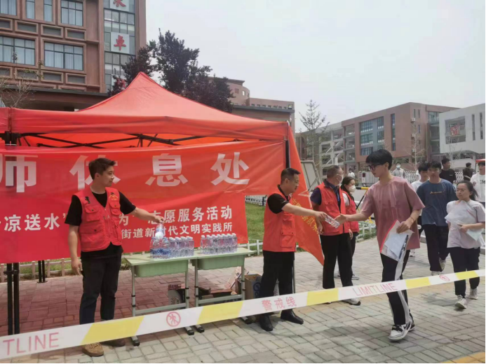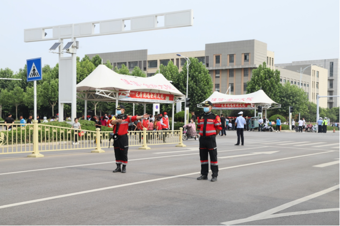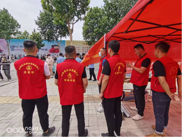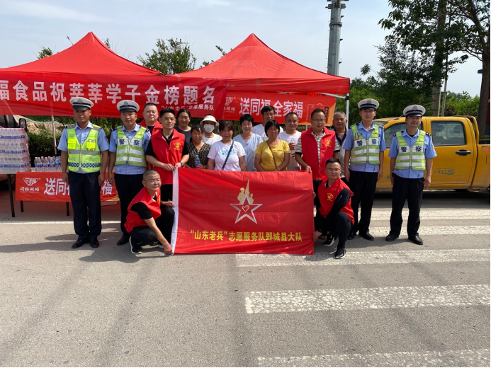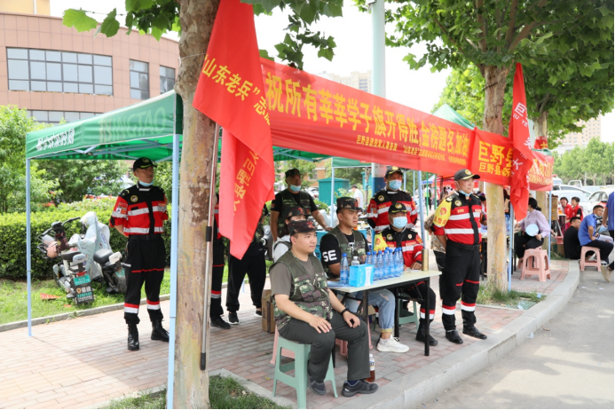 “山东老兵”牡丹区东城街道退役军人红心志愿服务队出动退役军人志愿者十余人,在二十二中考场开展了助力高考爱心志愿服务活动,给高考学子营造了安全有序的考试环境,为高考顺利进行提供了外部保障。