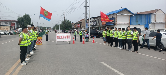 志愿者们在交通拥堵路段协助交警指挥交通,疏散拥堵车辆,用实际行动为莘莘学子贡献一份老兵力量。
