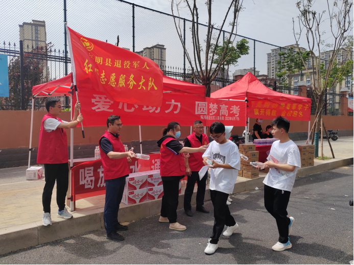 6月7日一大早,巨野县退役军人事务局组织发动“山东老兵”志愿服务队巨野县大队、巨野特战救援队共16名志愿者,在巨野一中考点外支起了遮阳帐篷,设置了“爱心助力学子”志愿服务站,为考生和家长们准备了矿泉水、风油精、口罩等物资,帮助考生做好考前准备,并为在考场外耐心等待的家长们提供休息、乘凉的地方。