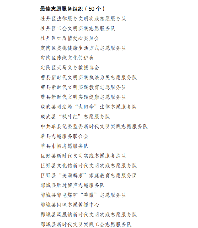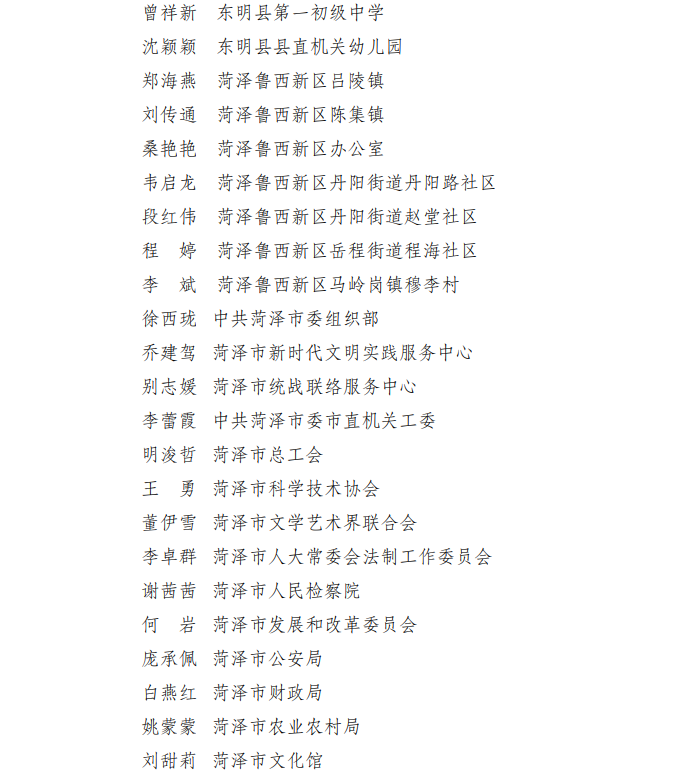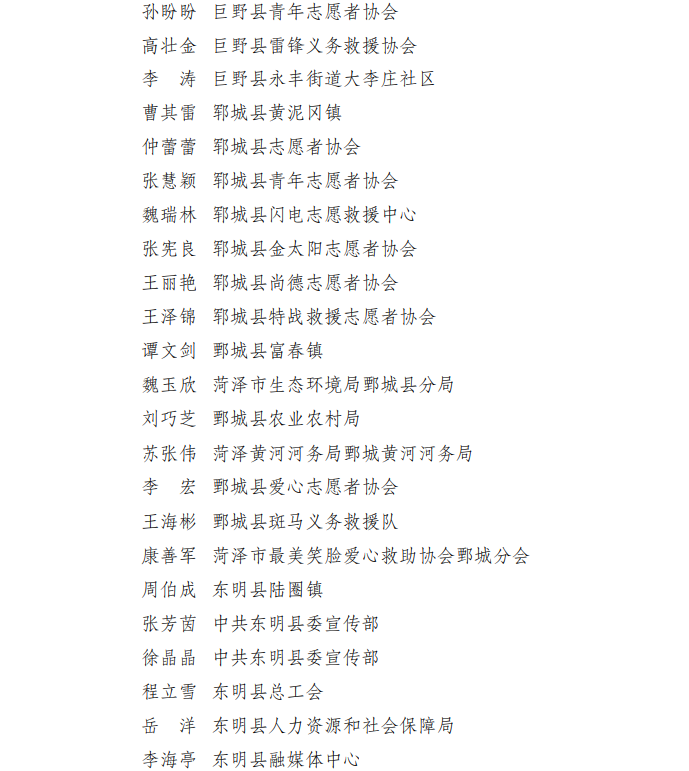菏泽市2023年“五为”文明实践志愿服务先进典型候选名单