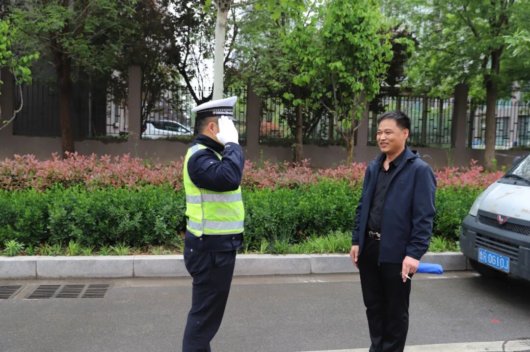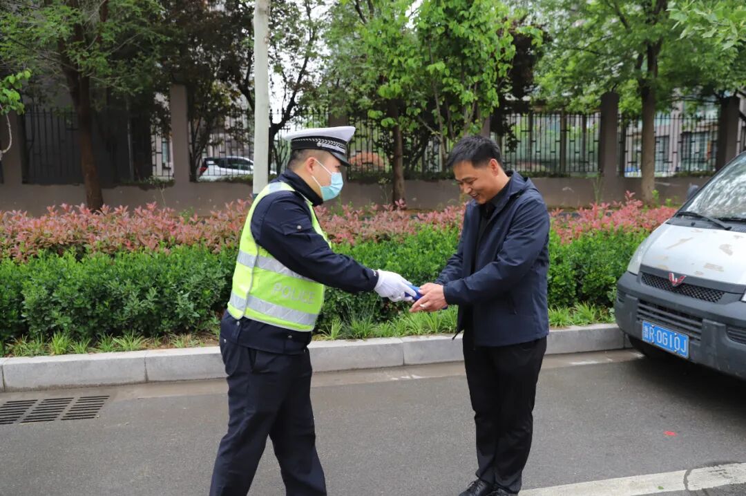 执勤结束后,为了将雨伞及时归还,并表示感谢,开发区交警通过车牌信息查询并联系到热心市民杨先生,最终执勤交警黄彦杰将雨伞还给杨先生,并对杨先生表示感谢。