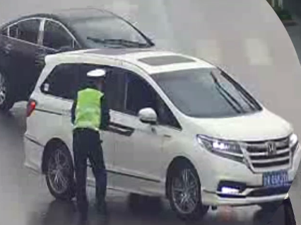 执勤交警黄彦杰:“当时我在路口指挥交通,白色轿车减速并摇下车窗,我以为有什么事情,就过去询问,不料车主扔下一把雨伞,我都没来的及说声谢谢,车子就开走了, 我心里非常感动。”