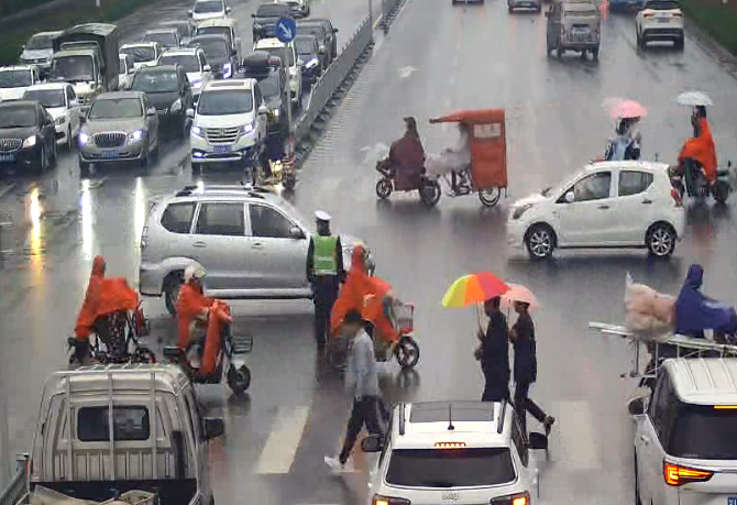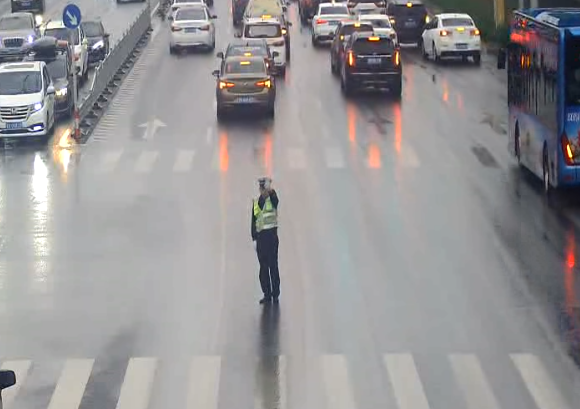 雨天辛苦工作的交警