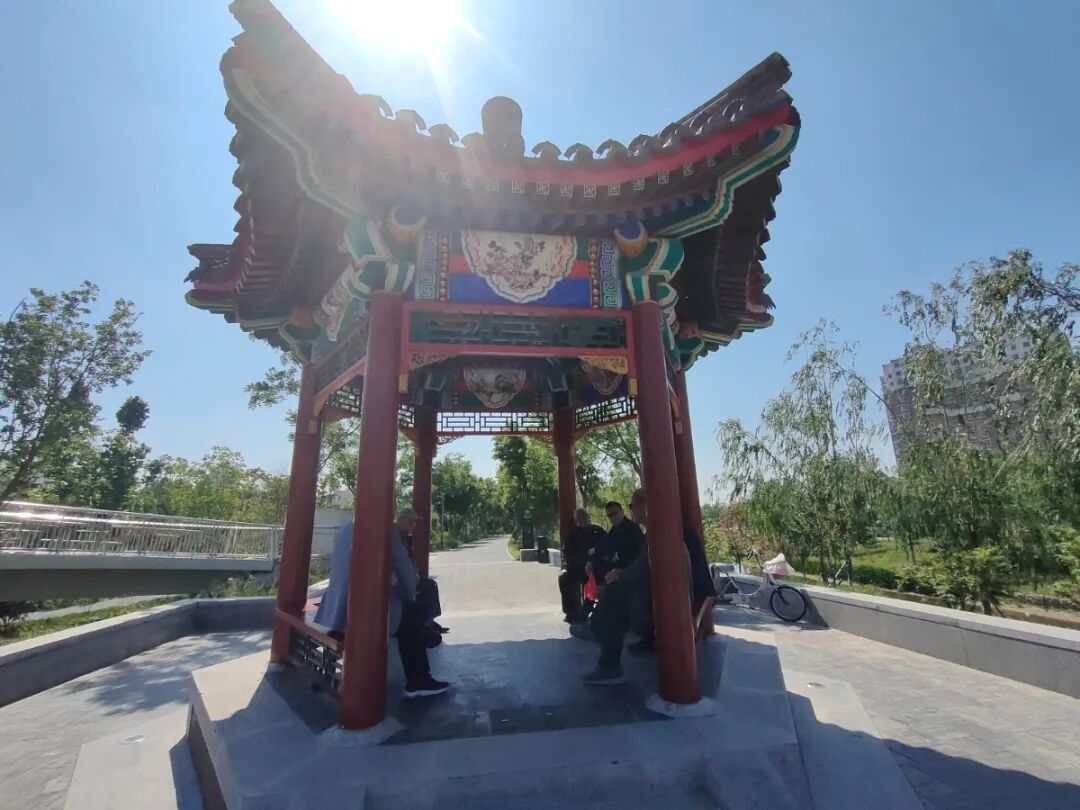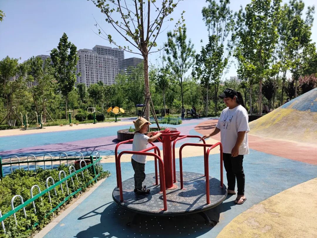 除了郁郁葱葱的植物之外,公园内的古建筑也别具一格,不管是亭子还是有着复古风的道路,都透露着深厚的历史气息,而且在公园内还有不少的娱乐健身的项目,梅花桩、健身器材,还有孩子们游玩的各种娱乐设施,如果不想看风景了,还可以去健健身。