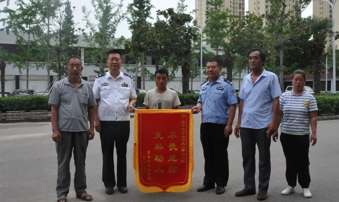 6月15日,被救群众汲先生携家属及热心群众来到菏泽市公安局交警支队机关,专程赠送写有“不畏危险,无私助人”的锦旗一面,对刘宗瑞同志及时施救的英勇行为表示真诚的感谢。
