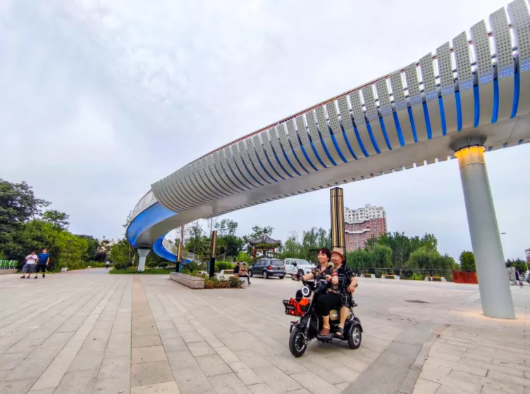 在桥上散步的居民表示:“很好,早晚散步过马路安全方便多了!走在桥上视野开阔,风景特好。”