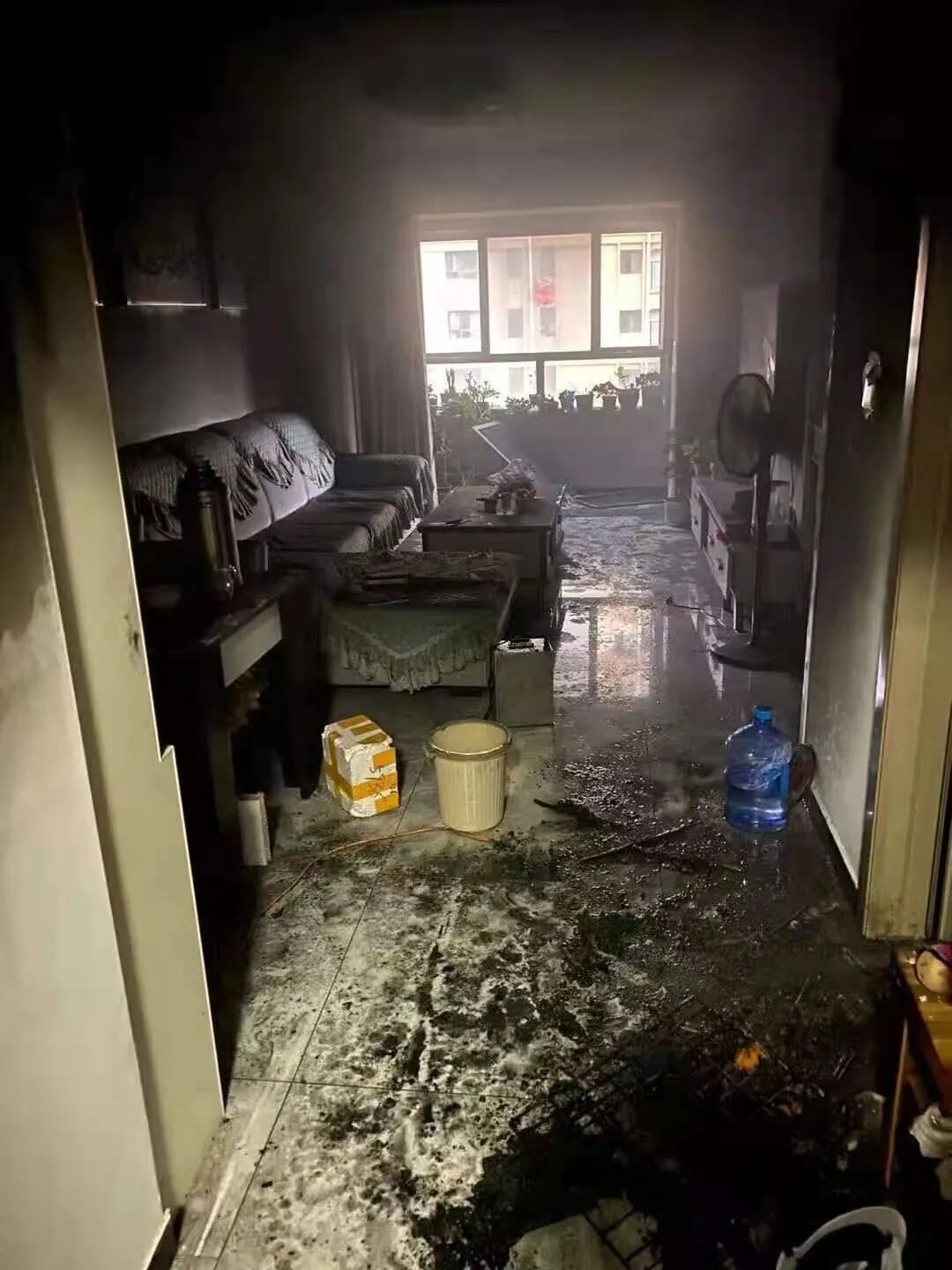 客厅部分物品均被烧毁,