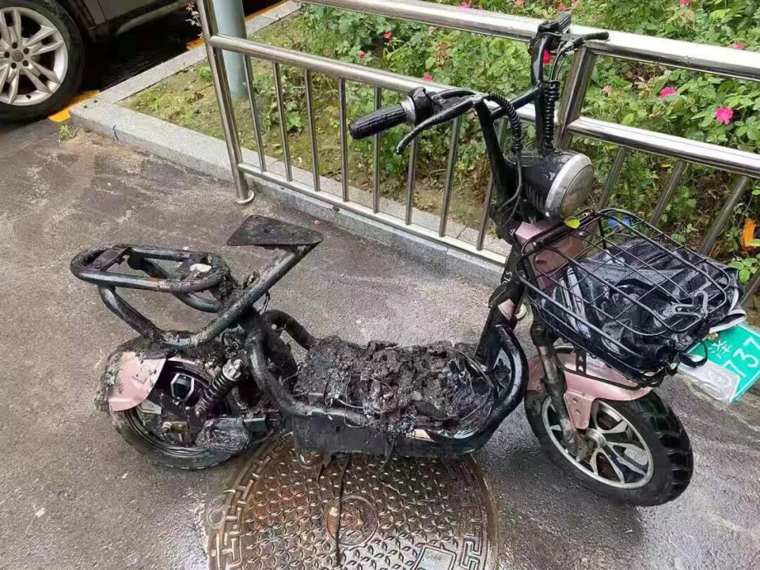 着火的电动车已经面目全非,