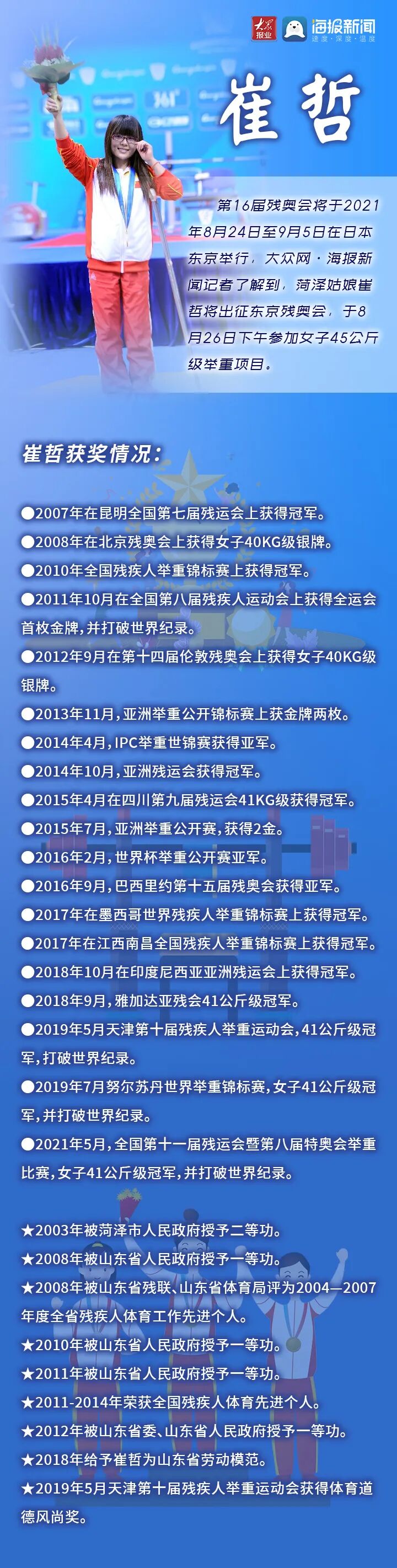 加油!菏泽姑娘崔哲出征东京残奥会