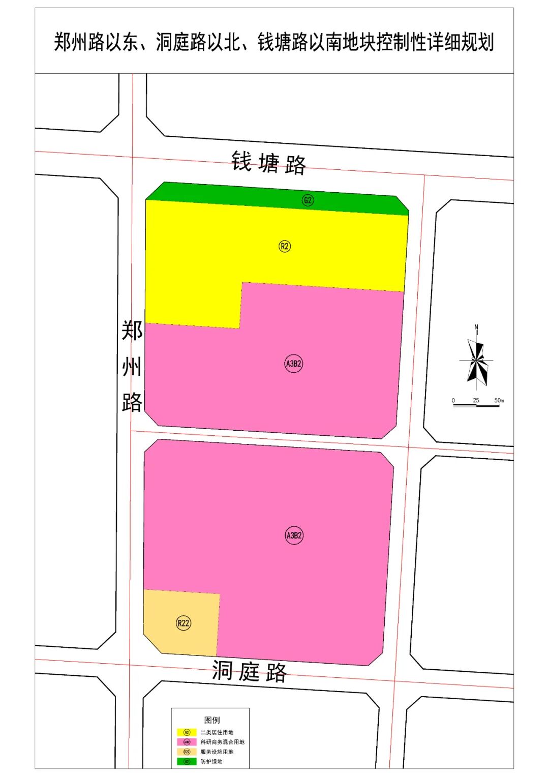 该地块位于郑州路以东、洞庭路以北、钱塘路以南,用地面积约13.41公顷(201.15亩)。地块规划用地性质为科研商务混合用地、二类居住用地和服务设施用地。