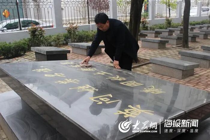 张景宪在擦拭烈士纪念碑(资料图)