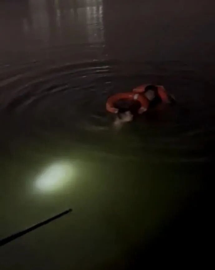 用对讲机呼叫增援后就跳进水里展开营救