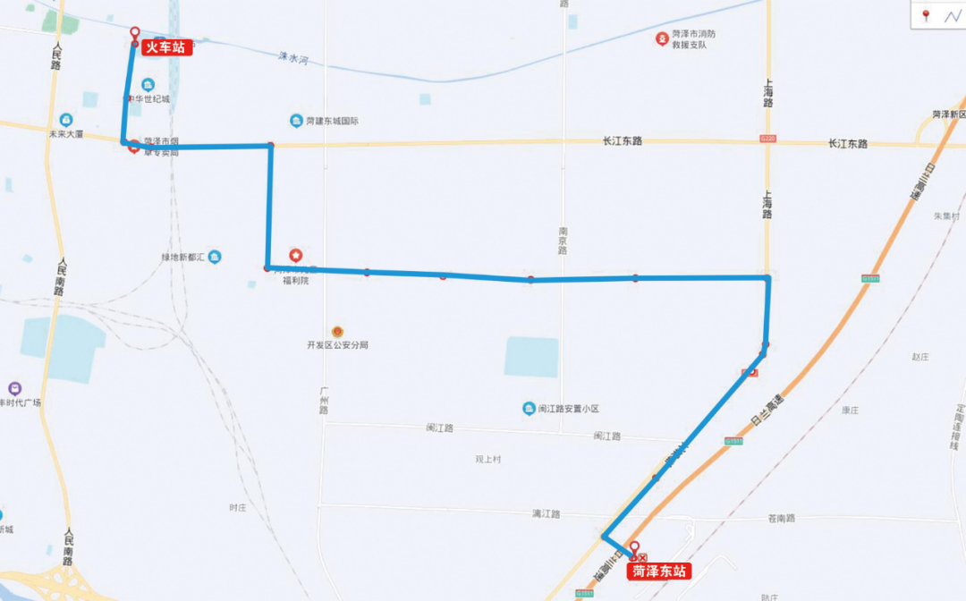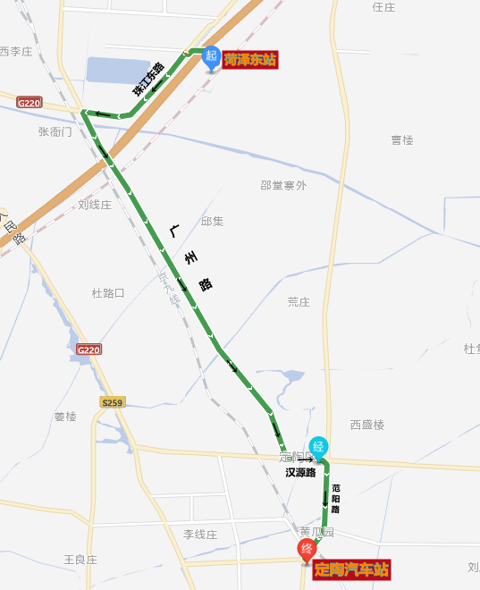 线路走向:菏泽东站-珠江东路-广州路-汉源路-范阳路-定陶汽车站