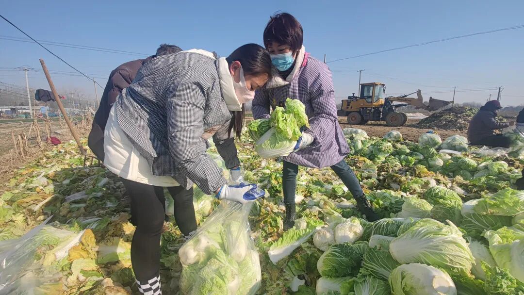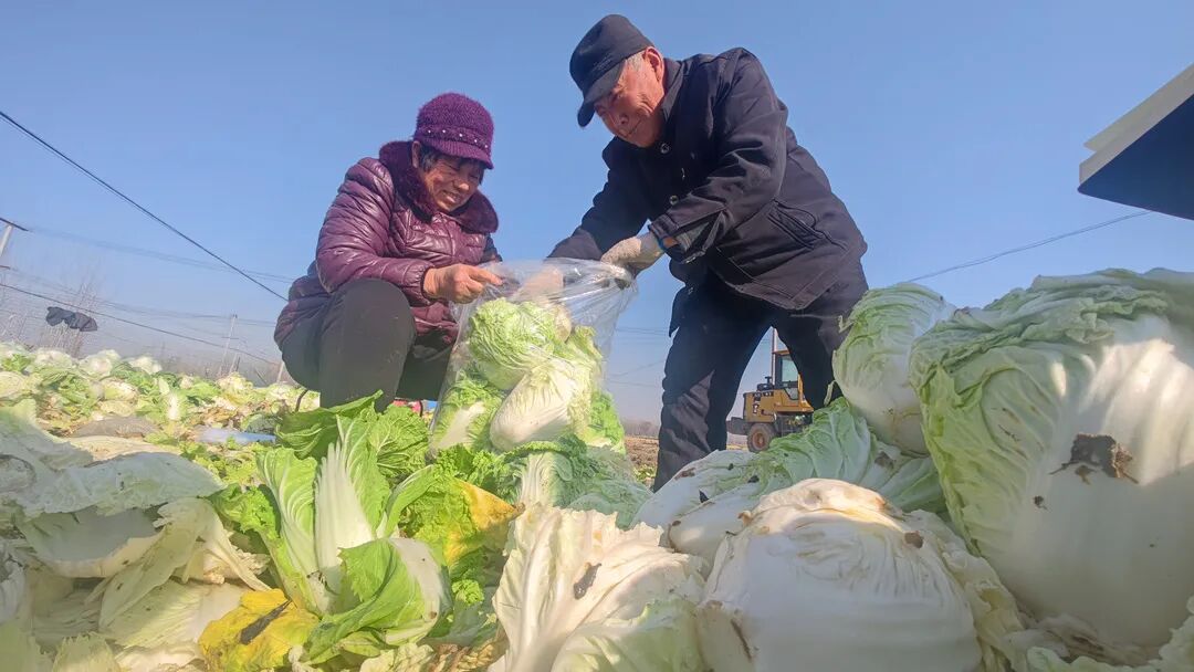 热心人顶着寒风帮忙装白菜