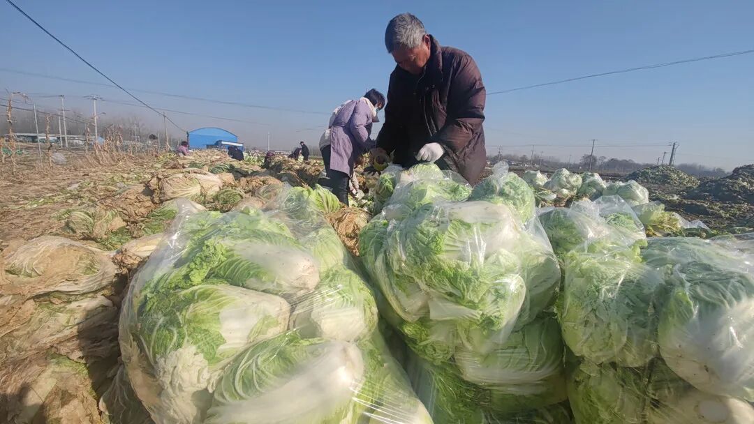 12月29日11时许,记者来到成武县汶上集镇燕庄村,看到不少人正在地里忙得热火朝天。他们兵分两路,一部分人忙着装白萝卜,一部分人将白菜帮和发黄的菜叶砍掉,然后将剥好的嫩白菜装进塑料袋。