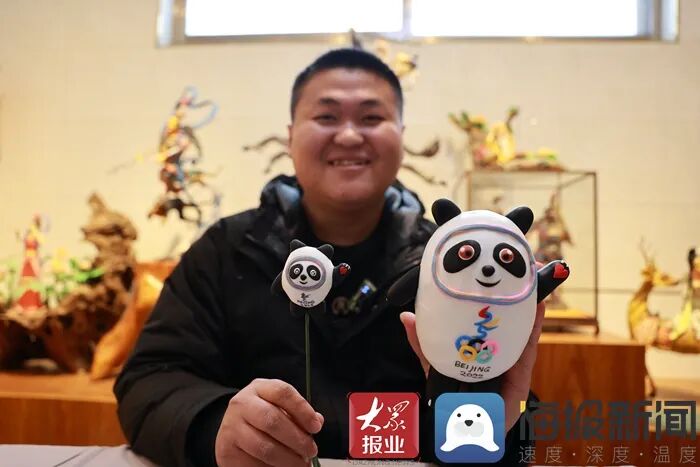 在于飞跃的工作室,于飞跃凭着一双巧手,一把工具刀,就把憨态可掬的冬奥会吉祥物“冰墩墩”完成了,将指尖上的艺术演绎的淋漓尽致。