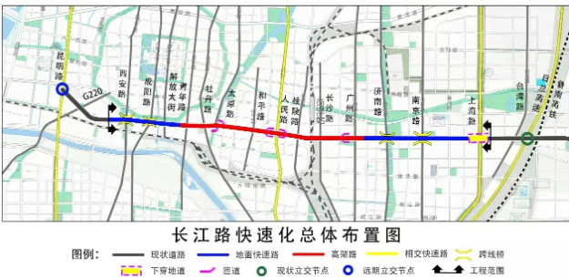 经市政府批准,长江路快速通道工程(西安路至上海路)施工期间半封闭通行,现就相关事宜公告如下: