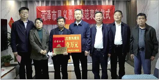 张磊表示,见义勇为以即时表彰为主、集中表彰为辅的表彰奖励机制,推进见义勇为表彰经常化、制度化、规范化。菏泽市见义勇为基金会本着“不放过‘小’的善行义举,不忽视正气、正义量的积累”的原则,扩大表彰奖励范围,确保所有参与见义勇为的人都能得到及时肯定和褒奖,不断积累社会正能量,实现“星星之火,可以燎原”。