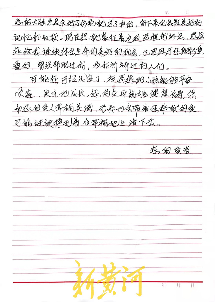 而崔开庚在回信中写道:“祝你早日康复,未来有更好的人生去实现更多自己的理想,也希望我们共同努力,力所能及地做更多可以帮助别人的事情。”