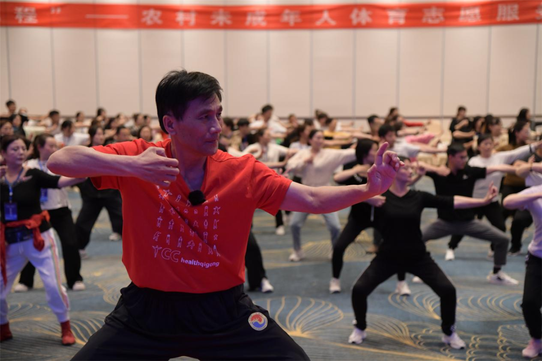 中国孔子文化学院副院长,国家级武术裁判员、国家级体育指导员,硕士研究生导师王俊法进行八段锦技能培训