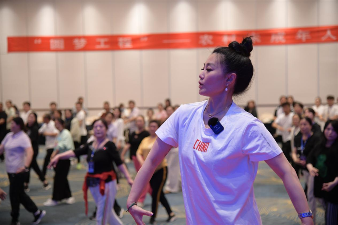 山东体育学院体育艺术学院公共艺术教研室主任魏爽进行健身操技能培训