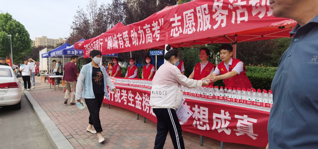 巨野农商银行在巨野县第一中学门口处开展助力高考志愿服务活动,为参加高考的学生及陪考家长免费提供饮用水、防暑降温等物品,衷心祝贺广大考生旗开得胜,金榜题名。