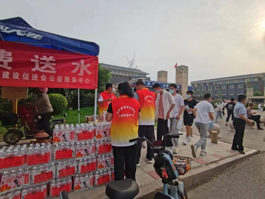 郓城县尚德志愿者协会、金太阳志愿者协会、诚信建设促进会公益服务中心开展了新时代文明实践志愿服务活动,在考场外搭建起“爱心保护伞”,免费为考生及家长提供饮用水、防暑降温药品、口罩、急救包、考试用品等物品,用充满温暖与真情的服务为考生送去信心。