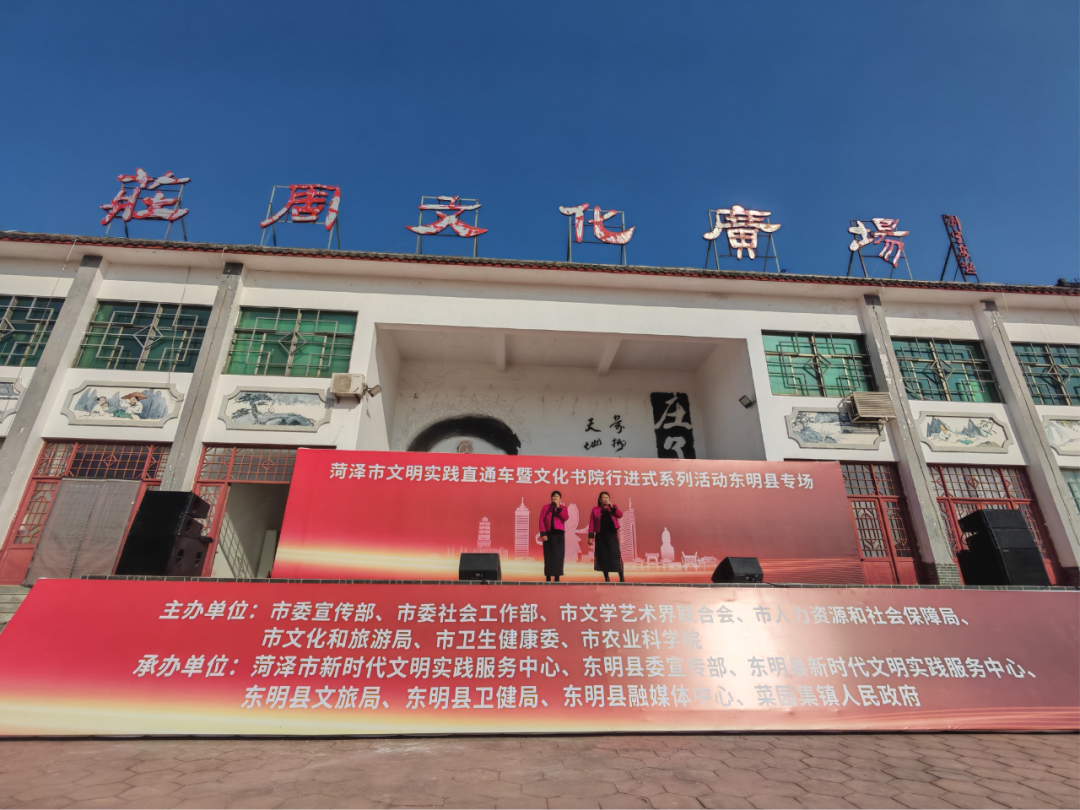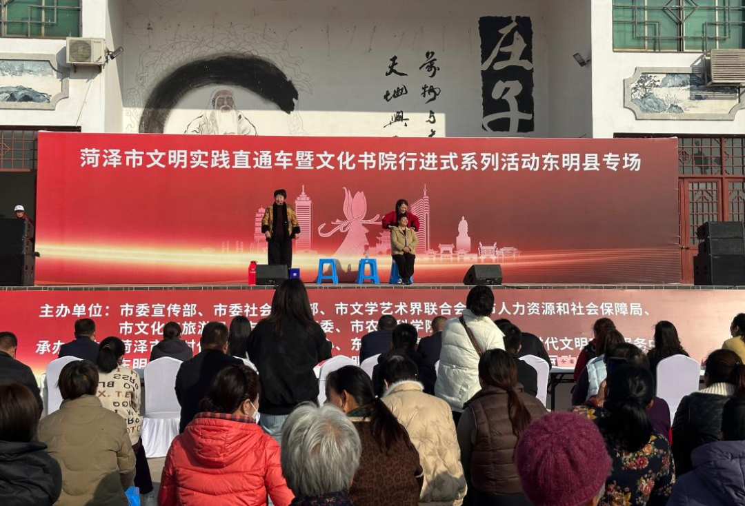 初冬时节,暖阳高照。11月14日,菏泽市文明实践直通车暨文化书院行进式系列活动东明县专场在菜园集镇庄周广场举办。此次活动由市委宣传部、市委社会工作部、市文学艺术界联合会、市人力资源和社会保障局、市文化和旅游局、市卫生健康委、市农业科学院联合主办,旨在将优质文化资源与文明实践服务送到群众身边。