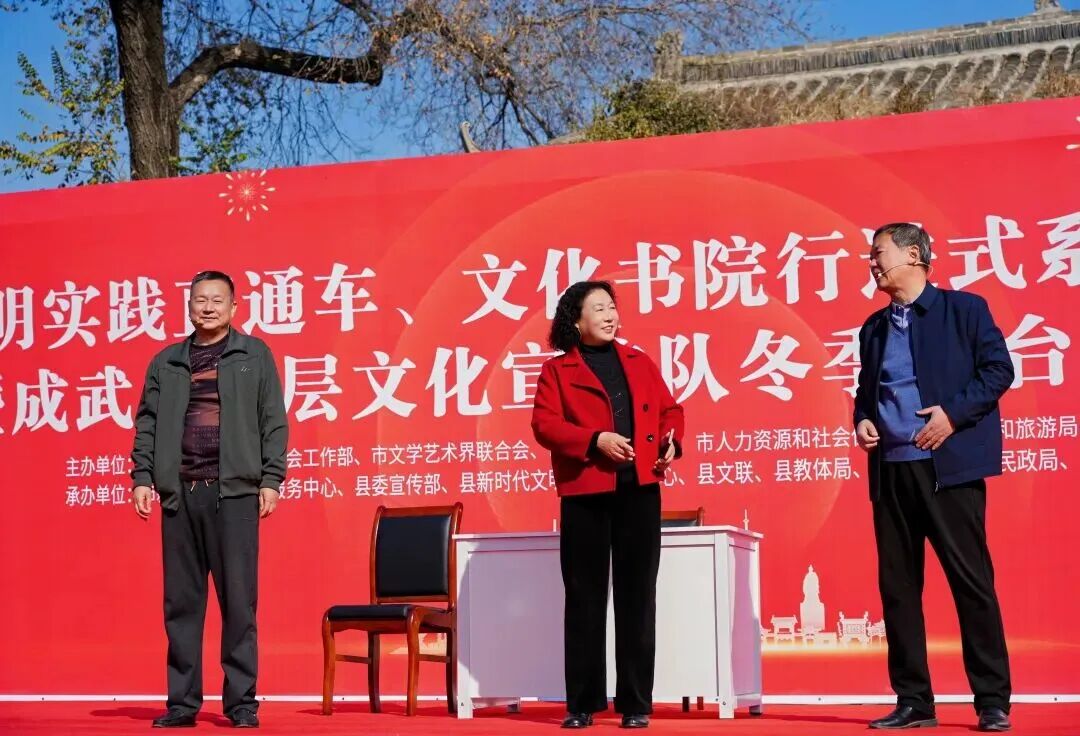 冬日暖阳,古韵新生。11月22日,菏泽市文明实践直通车暨文化书院行进式系列活动走进文化底蕴深厚的成武县,以“沉浸式体验+舞台展演”的双重形式,开启了一场融汇传统与现代、传承与创新的文明实践盛宴。活动在党集镇古村书院徐徐展开,以文化为纽带,串联起乡土记忆与时代新风,为乡村振兴注入蓬勃的精神动能。此次活动由市委宣传部、市委社会工作部、市文学艺术界联合会、市人力资源和社会保障局、市文化和旅游局、市卫生健康委、市农业科学院联合主办,旨在将优质文化资源与文明实践服务送到群众身边。