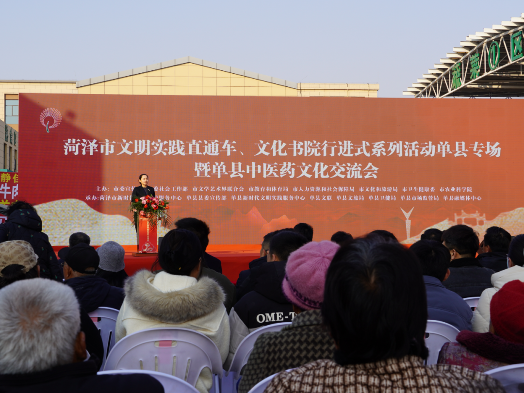 冬日暖阳照花乡,文明实践润人心。12月5日,菏泽市文明实践直通车、文化书院行进式系列活动单县专场暨单县中医药文化交流会活动在充满民俗风情的单县“十月会”成功举办,为当地群众带来一场内容丰富、形式多样的文明实践盛宴。