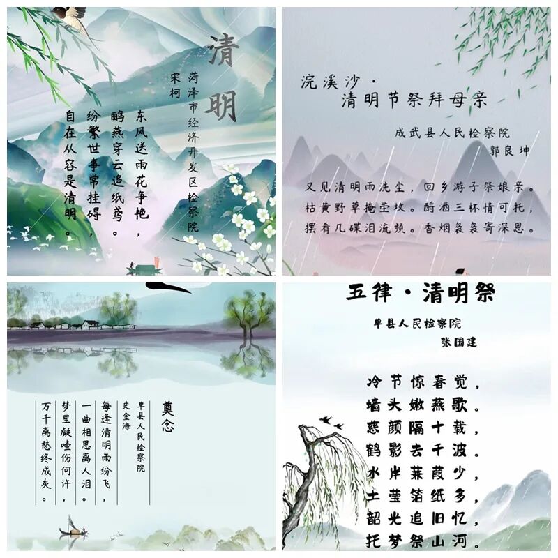 古人常常以诗寄情,表达清明时游子无法回乡的愁苦,用诗词缅怀先人,借景抒情。如今受到新冠疫情影响,无法到现场祭扫,检察官们便以诗传情,遥寄相思,致敬英烈,缅怀逝者。