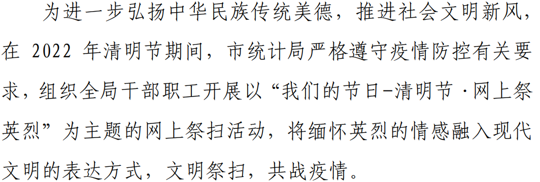 慎终追远,饮水思源,不忘先人,是中国人的优良传统。又是一年清明至,为逝去的亲人送上一束鲜活是追思的一种方式。当前,国内疫情防控形势复杂严峻,为减少聚集性感染风险,保障人民群众身体健康和生命安全。连日来,菏泽市各单位以“我们的节日・清明节”为主题开展了居家追思、鲜花祭祀、网络祭扫等形式多样的节日活动。