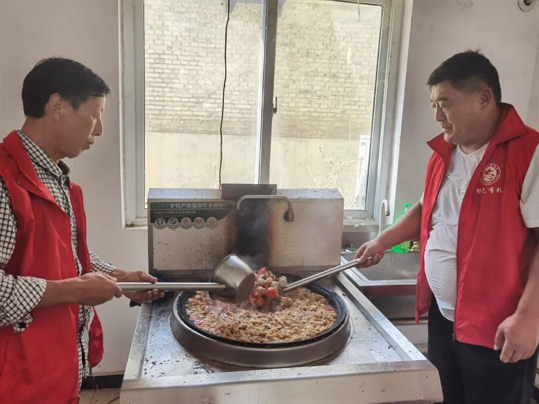志愿者们早早来到了察庄村新时代文明实践站,将糯米、粽叶、捆绳等食材摆上了桌,为让老人们吃得舒心,志愿者们还准备了炸酥肉、丸子汤。