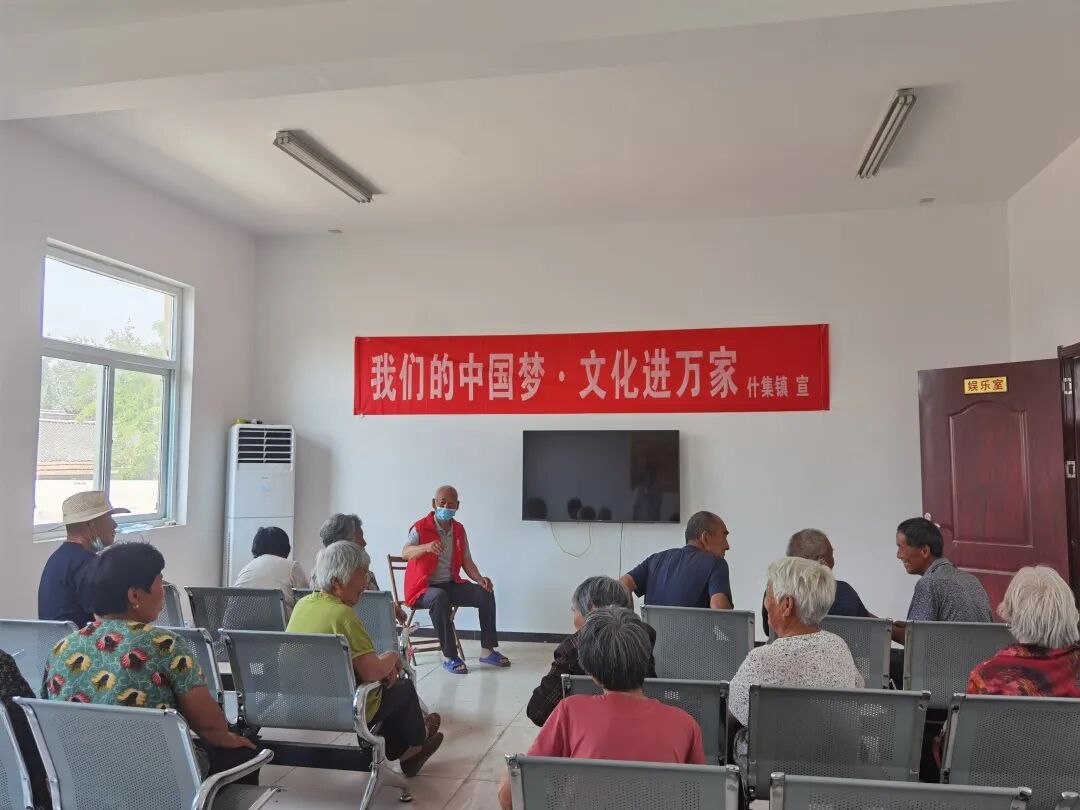 什集镇新时代文明实践中心的老党员志愿者,为老人们讲起了自己的红色故事,精彩的讲述让老人们身临其境,也回想起来自己年轻时的事情,不禁现场谈论起来。