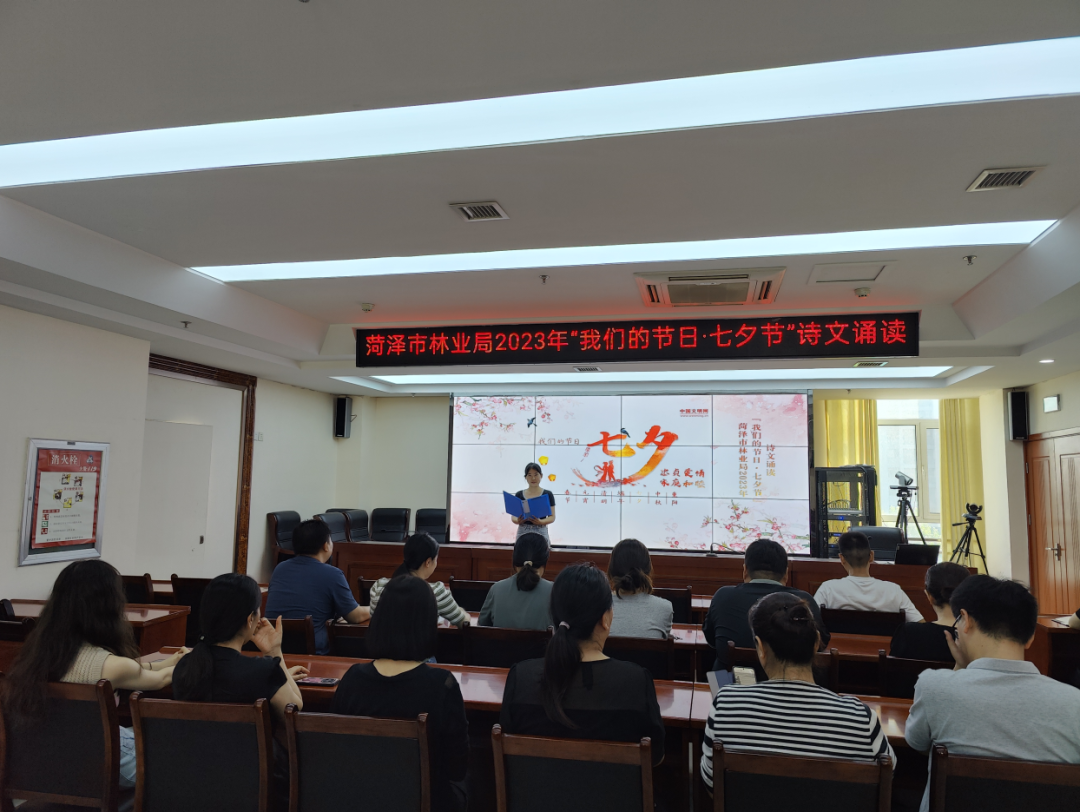 为弘扬中华民族传统文化,丰富广大干部职工精神文化生活,增进大家对传统节日的了解,讴歌美丽爱情、幸福生活,市林业局于8月22日开展“我们的节日·七夕”试诗文诵读活动。一首首脍炙人口、富有浪漫主义色彩的经典诗词,被大家声情并茂的朗诵,诠释了人们对爱情的坚贞、矢志不渝和愿天下有情人终成眷属的美好姻缘,同时也让大家感受到传统文化的魅力。