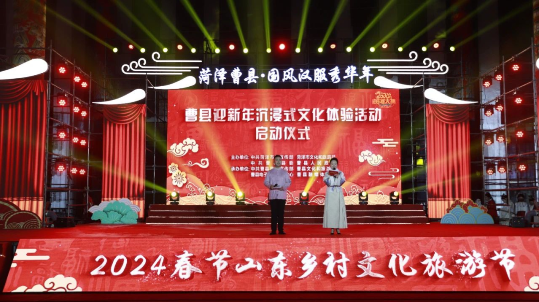 品汉服风韵、扬非遗文化、尝经典美食、赏中华之美。2月6日晚,2024春节山东乡村文化旅游节系列活动——“国风汉服秀华年”曹县迎新年沉浸式文化体验活动在e裳小镇·曹县数字经济产业园启动。