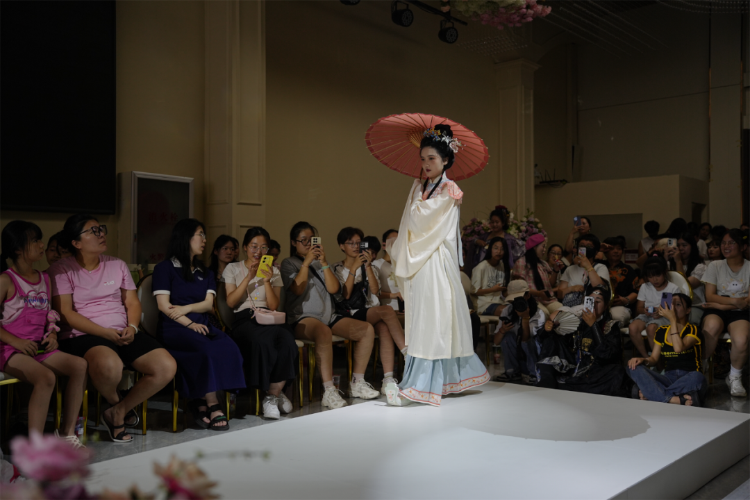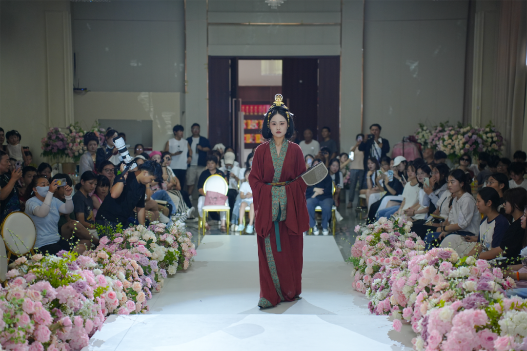 随后,开展了丰富多彩的汉服礼乐文化交流活动。伴随着流动的韵律,舞蹈《长安歌》、汉服走秀《盛世霓裳》等文艺节目轮番上演,表演者身穿汉服,如霓裳丽人、仙姿婀娜,似从静谧的远古而来,举手投足间都是古韵美感和大气端庄,带领观众一起穿越到汉朝,一览优秀传统文化的绚烂旖旎。