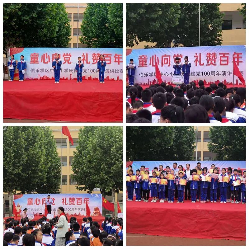 5月14日,成武县伯乐学区中心小学全体师生开展“童心向党,党的故事我来讲――礼赞百年”演讲比赛活动。