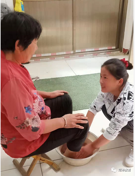 在生活里,李彤从点点滴滴的生活细节中体现了她对父母长辈那份真真切切的孝敬之心。由于爷爷奶奶身体不好,不能干重活,母亲还要照顾年幼的弟弟,家里的生活重担落在了爸爸肩上。李彤看在眼里,记在心里,在她很小的时候,她就已经懂得了自己的事情自己做。面对家庭的窘迫和艰辛,她时常帮妈妈做一些家务,打扫卫生,洗衣服择菜等;此外,在学习之余,她还总会主动给爷爷奶奶端洗脚水捶背,让爷爷奶奶感受到儿孙的爱。虽然年纪小,但是她总能很全面的照顾到家里的每一个人。每次看到满身疲惫下班回来的爸爸,她都会放下手中的事情,给爸爸捶捶背,揉揉肩来缓解下爸爸疲惫的身体,她在用自己力所能及的事情来表达她对家人的爱。