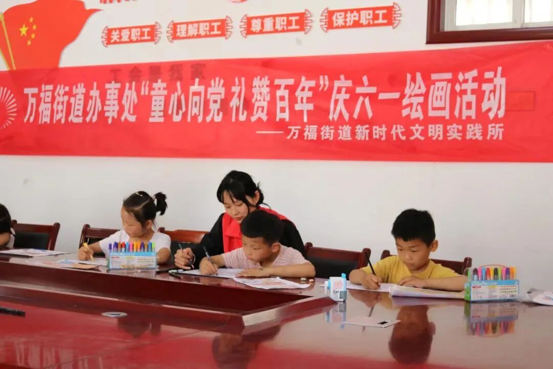 6月1日儿童节,菏泽高新区万福街道新时代文明实践所组织开展了“童心向党 礼赞百年”庆六一绘画活动。活动现场,志愿者用通俗易懂、生动有趣的语言向小朋友们讲解了中国共产党的由来与百年辉煌历史,激发了孩子们爱党、爱国的深厚情感,之后绘画老师指导孩子们运用画笔巧妙地勾勒出迎风飘扬的党旗、雄伟壮观的天安门、腾空而起的火箭等各种各样的图景,用稚嫩的笔触描绘自己眼中的祖国盛世和心中的美好生活。