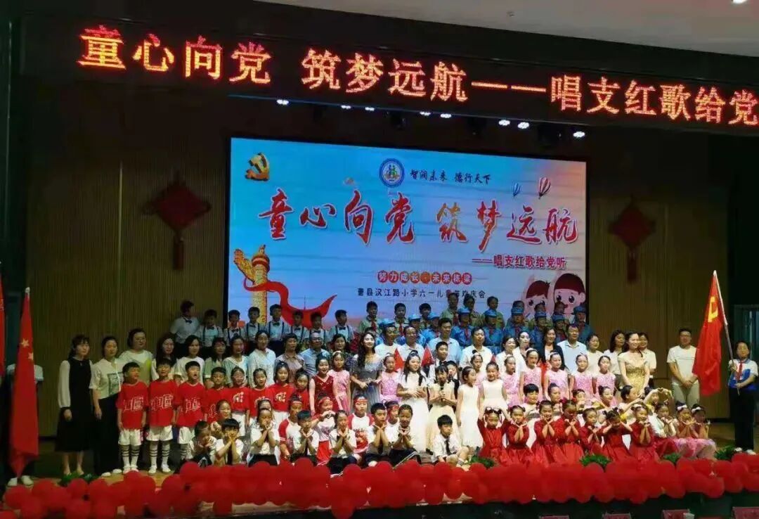 6月1日,曹县汉江路小学隆重举办“童心向党 筑梦远航――唱支红歌给党听”展演活动。共产党像太阳,照得大地多辉煌……同学们用歌声表达对党的感恩之情。