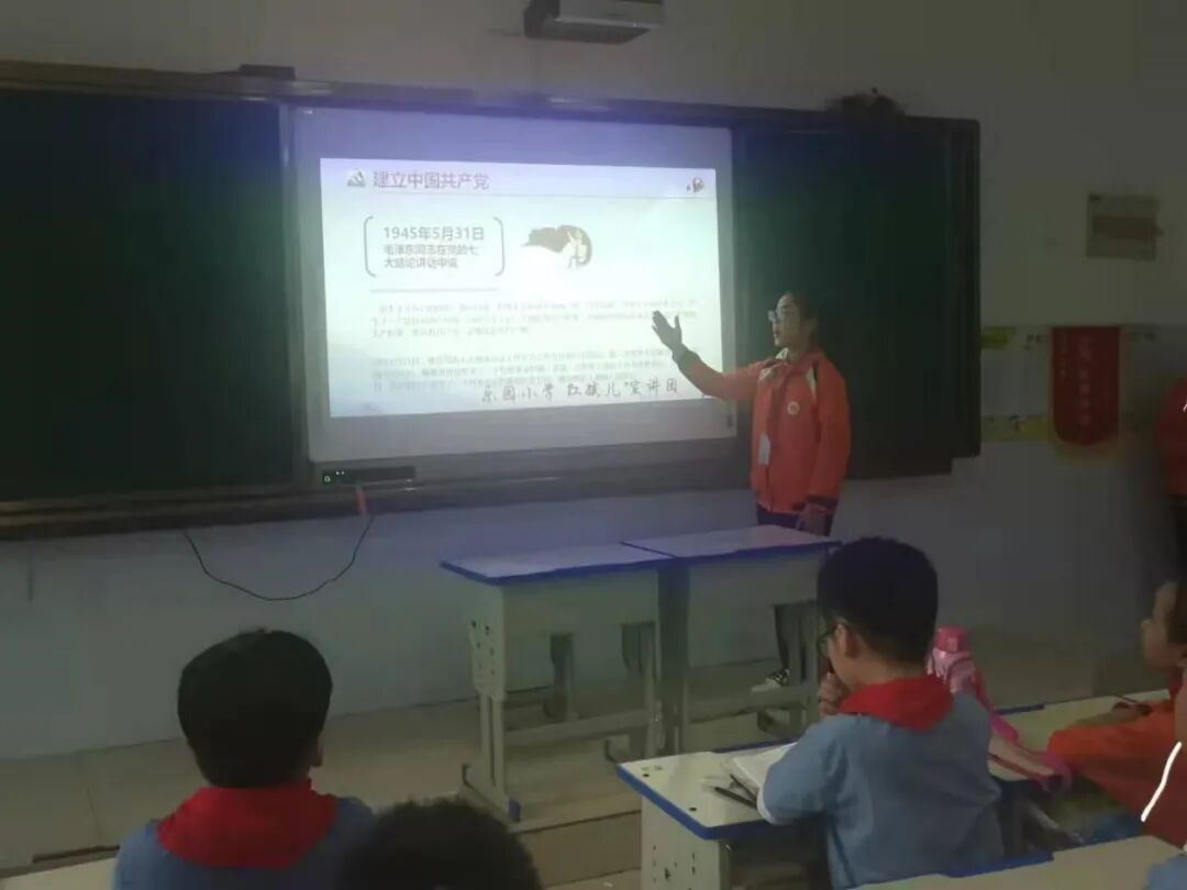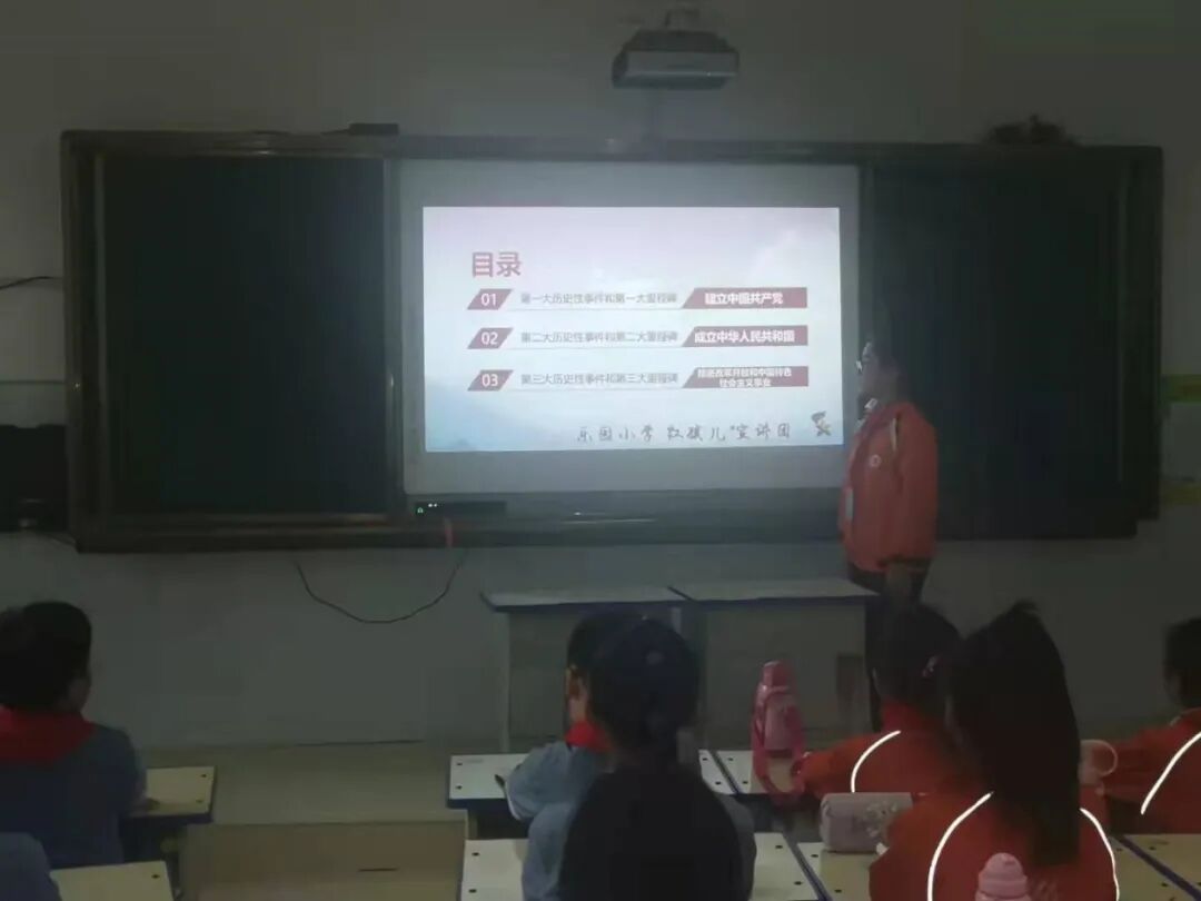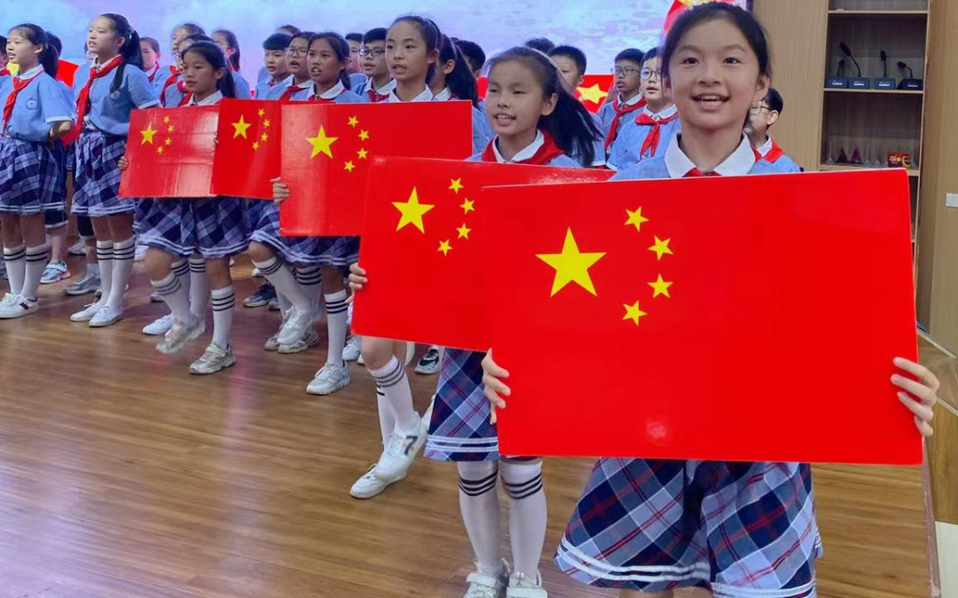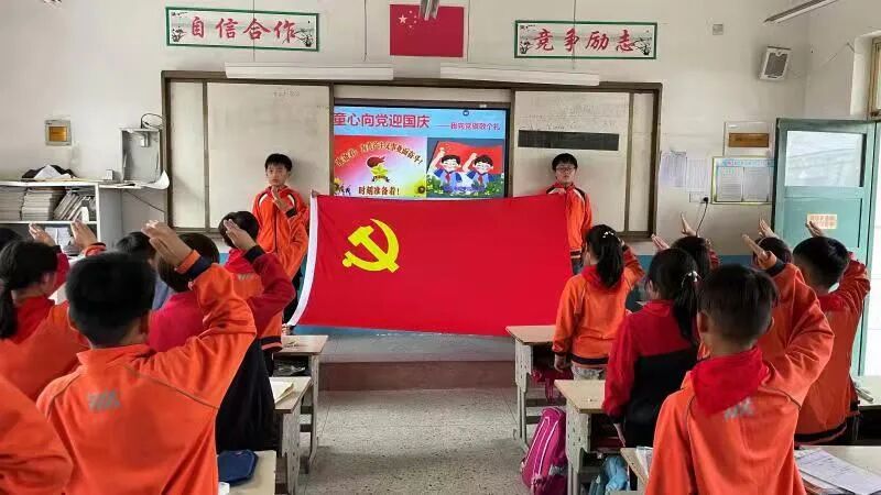 在郓城县唐庙镇中心小学、陈坡乡希望学校、黄泥冈镇中学、黄安镇中心小学、随官屯镇文昌苑小学、潘渡镇王屯小学等学校,各班举行了“‘童’心向祖国”主题班队会,辅导员老师们利用PPT、音视频等形式给学生们讲授党旗、国旗的含义,介绍党的光辉历史和祖国的发展历程,勉励孩子争做新时代的小小追梦人。