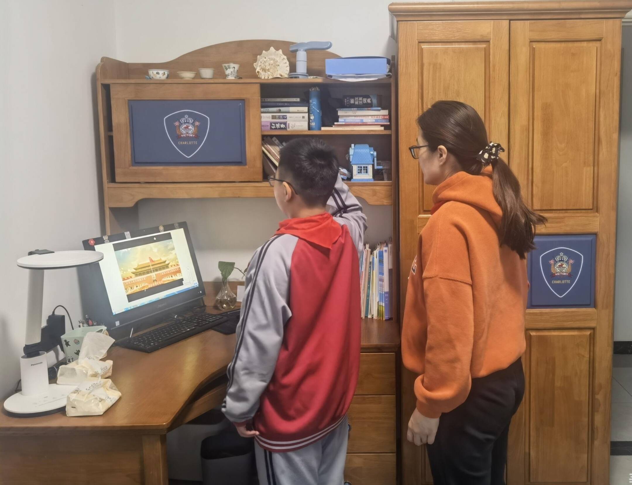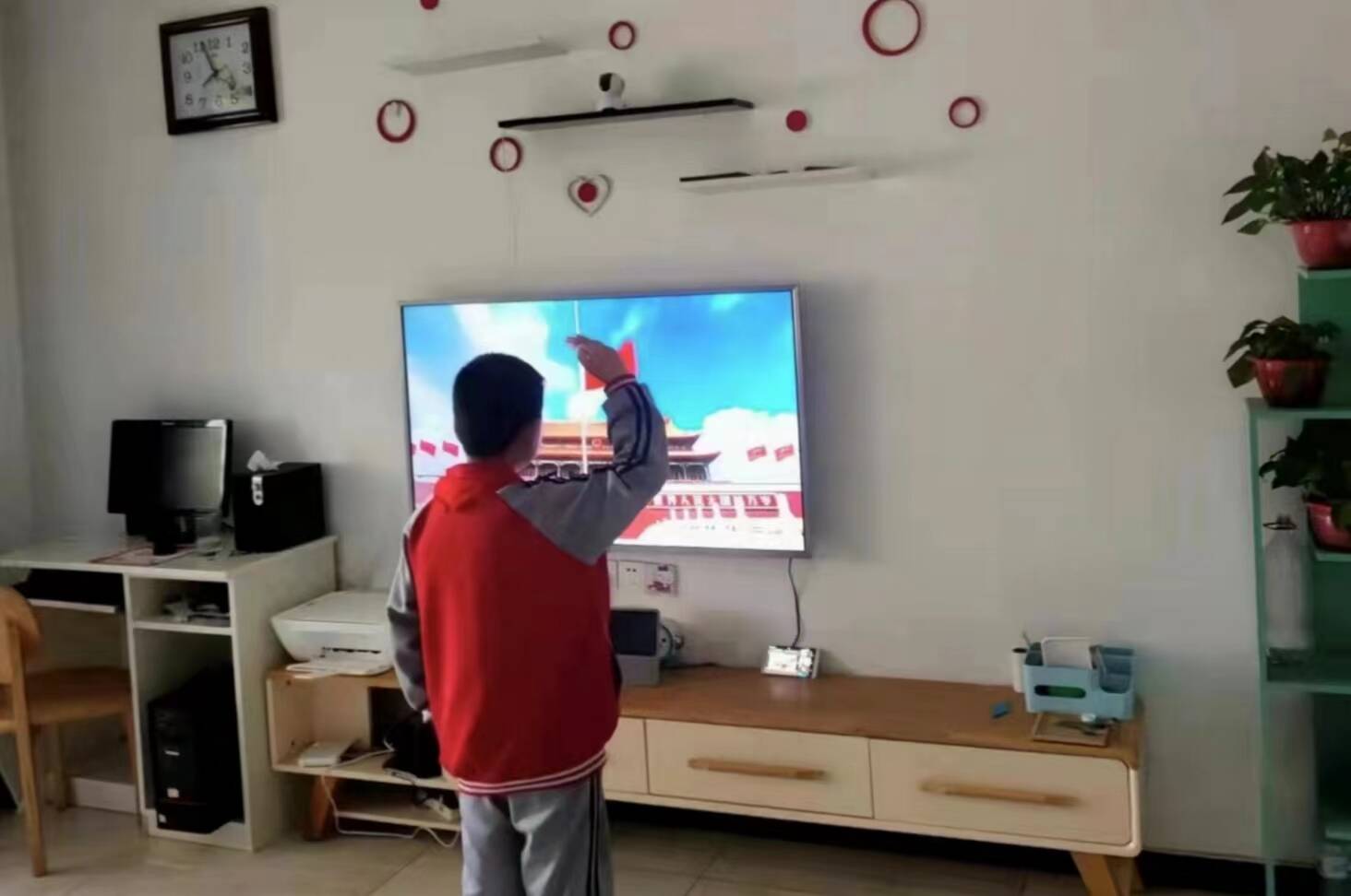 虽是“云端”升旗,但隔着屏幕也依旧能感受到这一刻的庄严和神圣。同学们一起致敬伟大的祖国,致敬这一段特殊时期的共同成长。