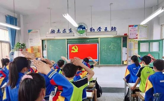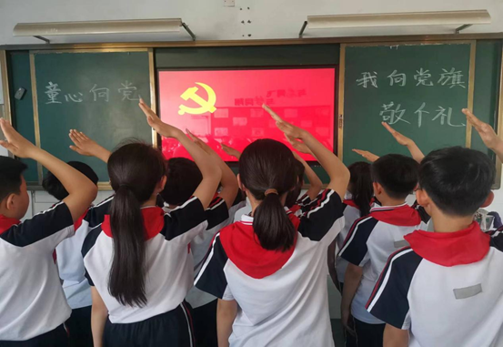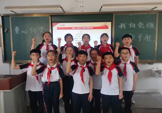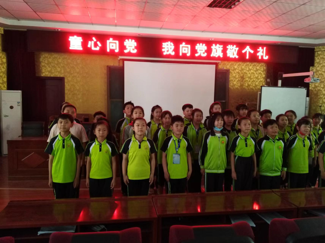 全体少先队员面向党旗行队礼,高声呼号,许下“从小学党史,永远跟党走”的庄严承诺,表达了“听党话、知党恩、跟党走”的坚定决心,畅想了“童心向党,快乐成长”的美好愿景。