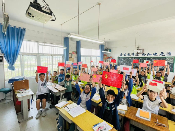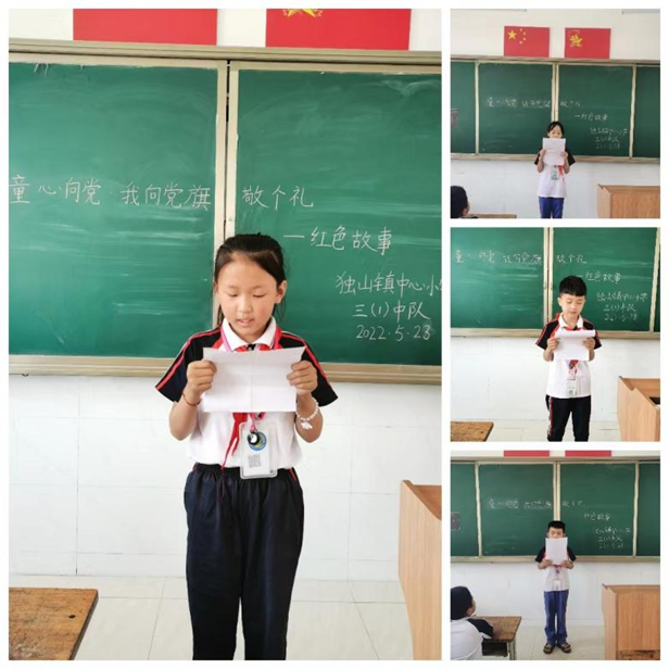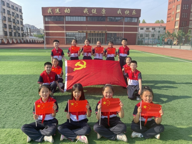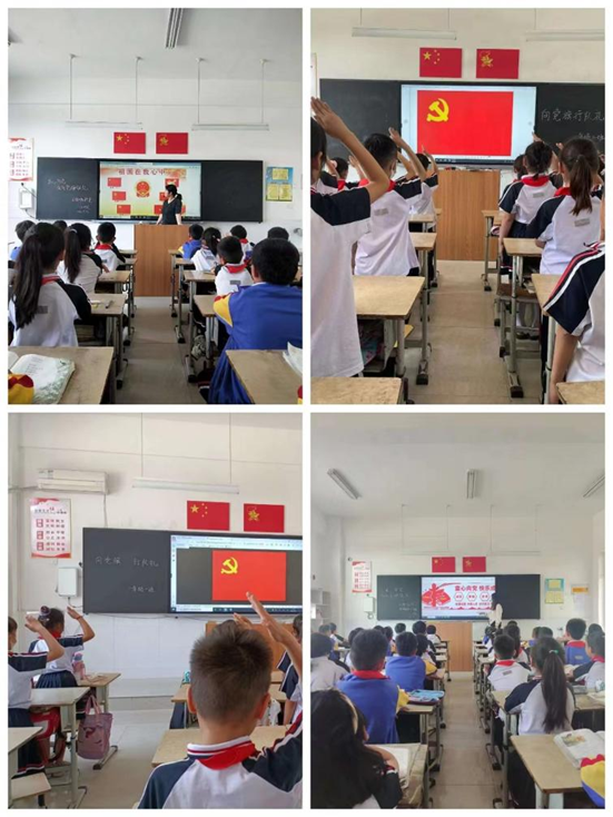 活动中,全体少先队员面向党旗,行队礼,高声呼号并许下庄严承诺,并高声唱响《没有共产党就没有新中国》。学生代表分享一个个红色故事,共同回顾党的光辉历程,表达对党、对祖国、对人民、对社会主义的深厚感情。