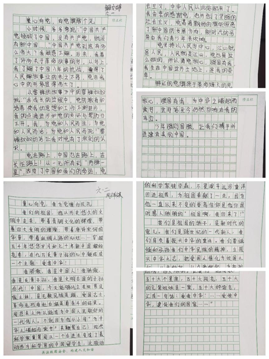 孩子们通过撰写“童心向党,我向党旗敬个礼”主题征文,用深情文字来表达孩子们传承红色基因,做小小追梦人,从小听党话、永远跟党走的爱党爱国之情。