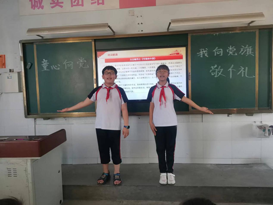 学校利用升旗仪式向全体师生现场讲授党旗的含义,介绍党的光辉历史,并勉励孩子们在党的关怀下好好学习,做新时代的追梦人,并组织全体同学积极参与“童心向党我向党旗敬个礼”演讲活动。