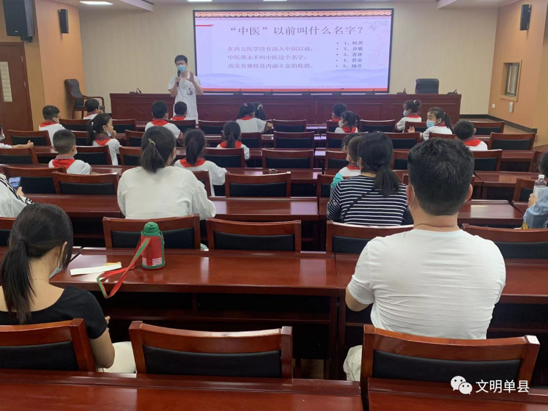 “有哪位小朋友知道,望闻问切是指的什么?在古代,医生又被称作什么?”,在科普大讲堂互动环节中,你一言,我一语,气氛异常热烈,通过中医知识互动,工作人员向孩子们讲解了中医的发展历史、中医是如何发挥作用的、中医的历史先进人物等知识,采取讲例子、打比喻等深入浅出的方式向青少年发出了好好学习,治病救人的理念,让孩子从小在心里播下中医药传统的种子,培养孩子们对中医药的基本认识,激发他们对传统医学的兴趣,从而成为弘扬中医药文化、传承中医药国粹的接班人。